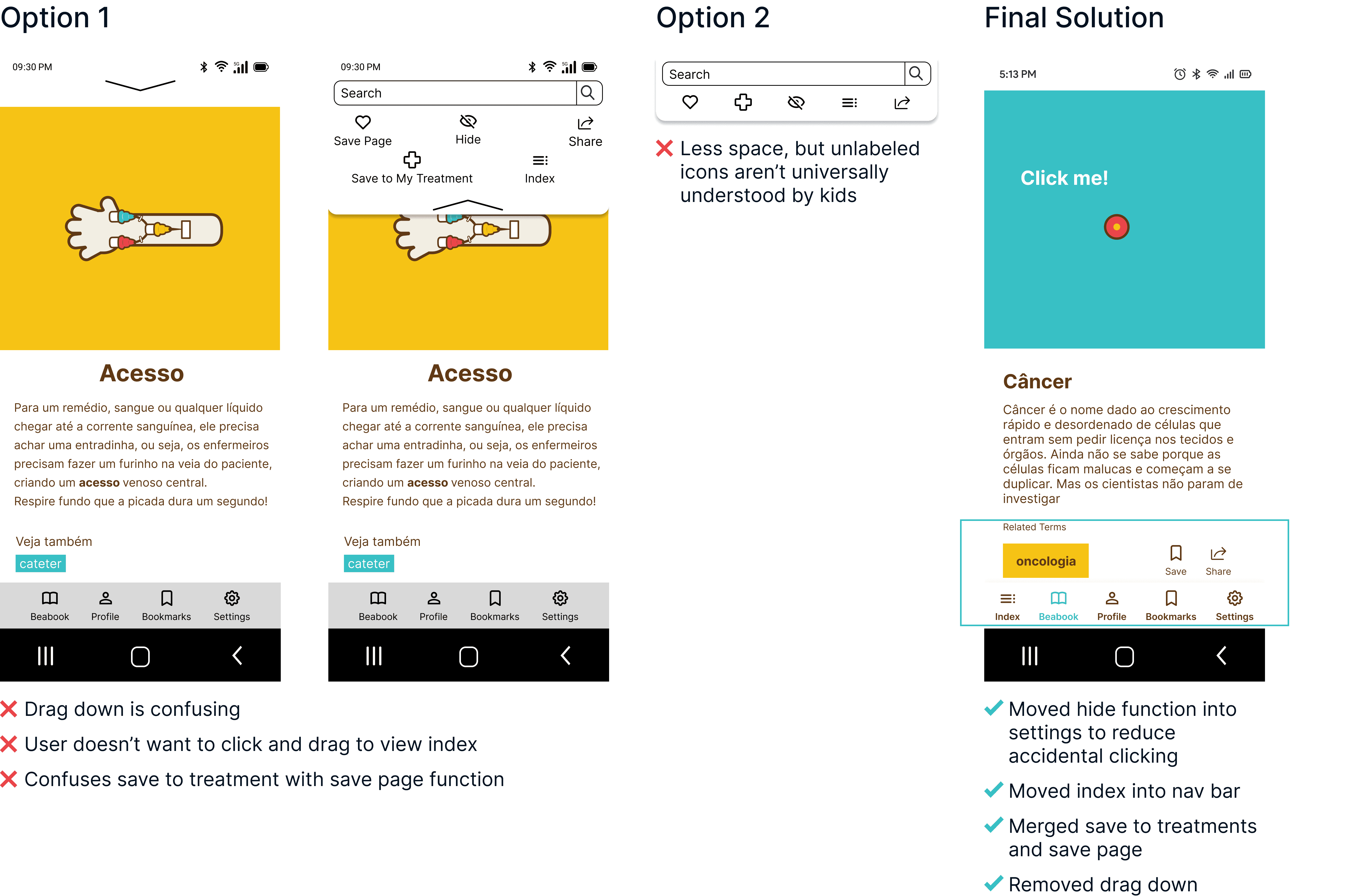 Beaba is an organization in Brazil that uses technology to demystify cancer for children and parents. My role was to lead the integration of Beabook, Beaba's physical cancer guide containing 200+ terms related to cancer, into a mobile app to help 32,000+ cancer patients and families worldwide feel more informed and empowered during their cancer journeys.